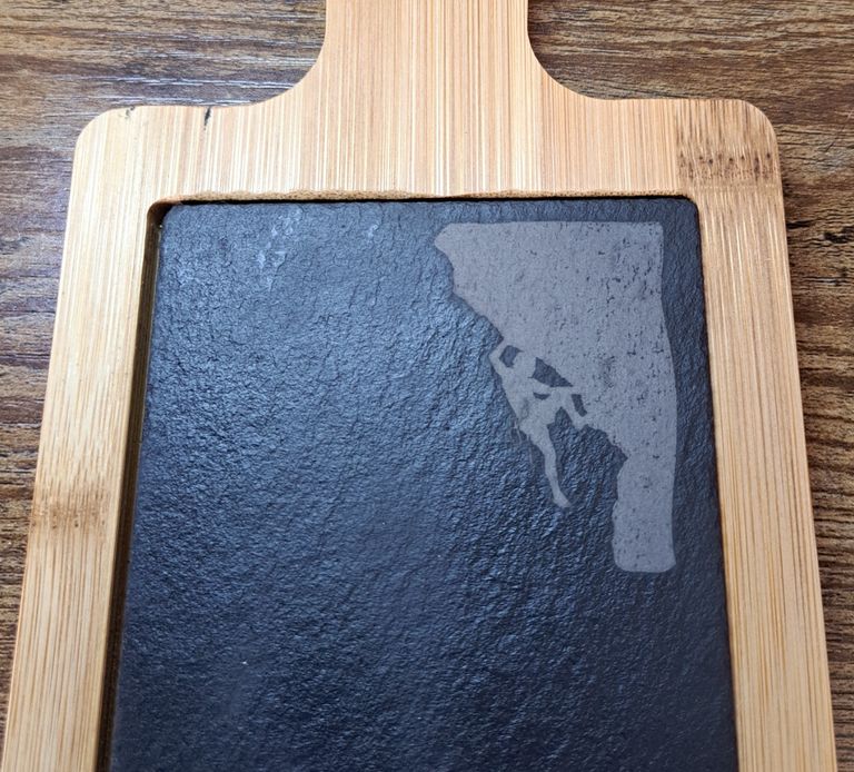 A client met me at a Car boot sale and told me he wanted to have his own custom design of a rock climber on a overhang climb so he could give it to a family member. They provided the image which I engraved to their specific requirements